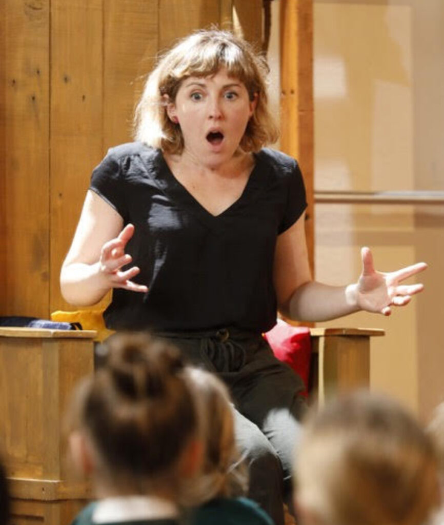 She regularly performs stories in schools and institutions across the arts including The British Museum, Shakespeare’s Globe, and the Royal Academy of Arts.